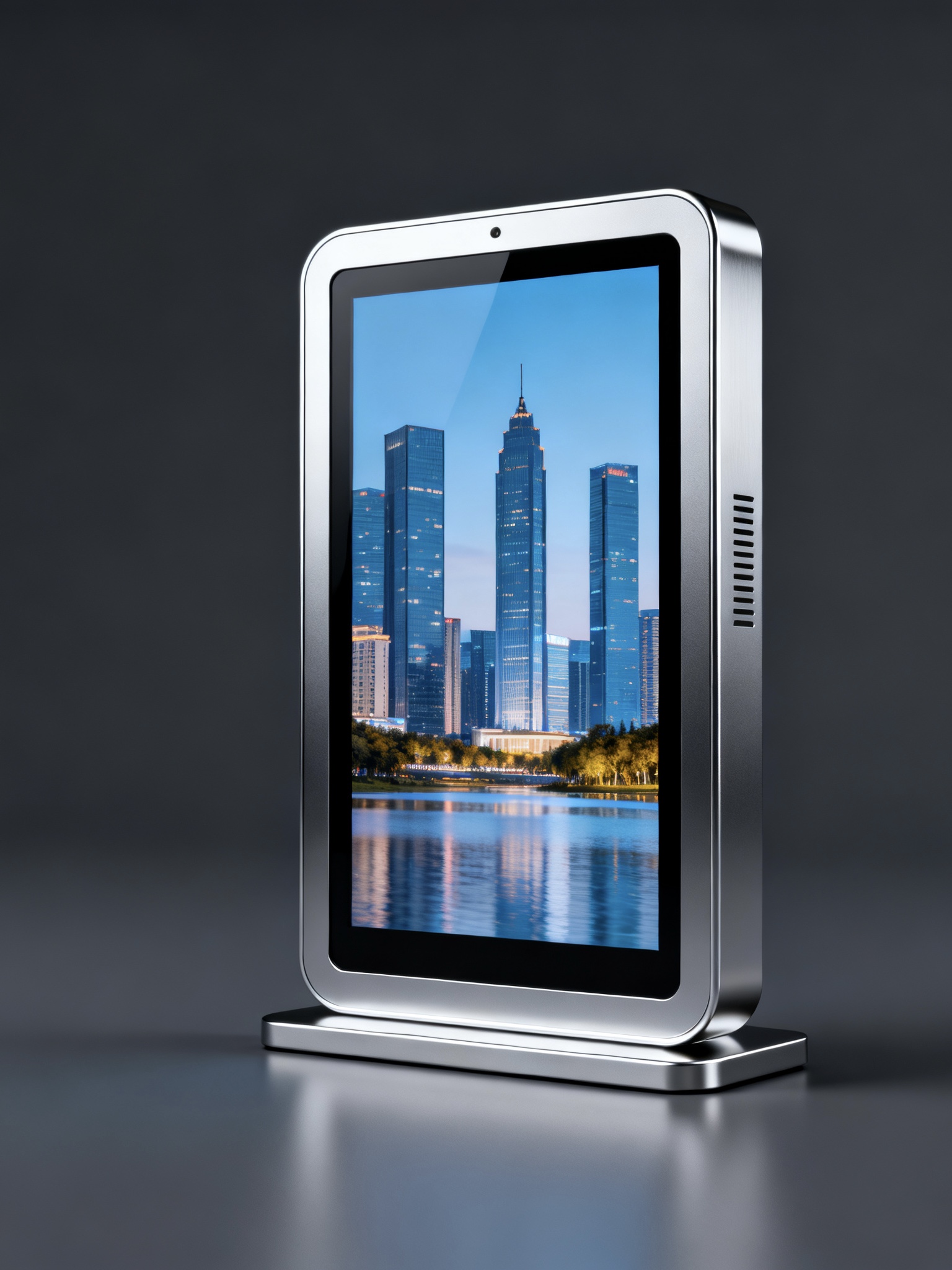 轻量化是铝边框最直观的优势之一。铝合金材质密度远低于钢材,仅为传统钢材的三分之一左右,这一特性让广告机整体重量大幅降低。对于高空壁挂安装的场景而言,轻量化边框能有效减少墙体承重压力,降低安装风险,尤其适合写字楼、商场等需要在吊顶或高墙体部署广告机的场所;而对于展会、活动现场等需要频繁移动广告机的场景,轻量化设计让单人即可完成设备搬运与安装,无需额外投入大量人力,显著提升部署效率。此外,轻量化特性还能降低运输过程中的能耗与损耗,减少物流成本,为商家全流程控制开支提供支持。