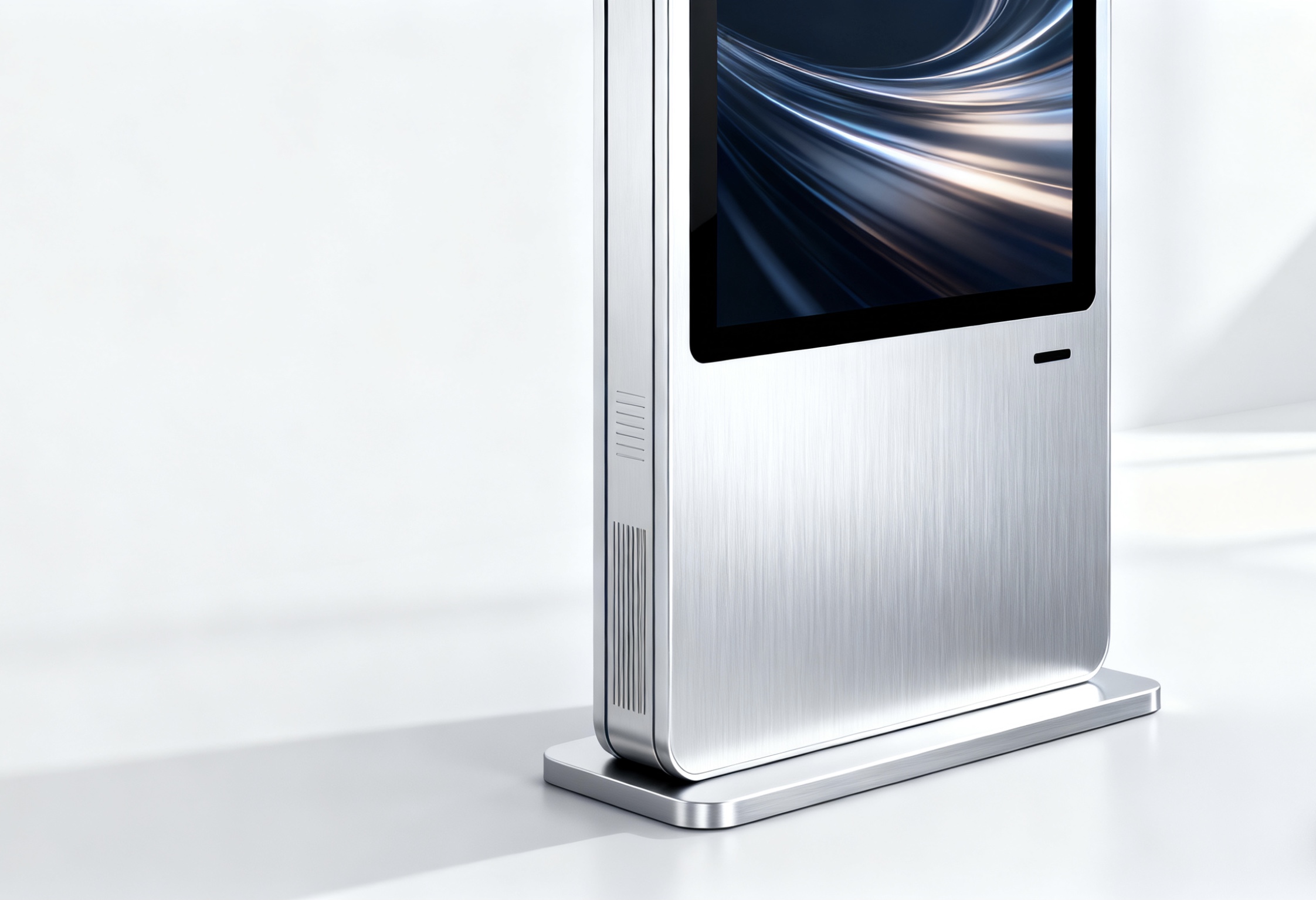 颜色与质感的定制化则让广告机更好地融入场景氛围。通过阳极氧化工艺,铝边框可实现银、黑、金、灰、蓝等多种基础色彩,还能根据品牌VI色进行专属调色,让广告机边框与品牌形象保持一致。在表面质感上,支持磨砂、拉丝、亮面、哑光等多种选择——磨砂质感低调内敛,适合写字楼、政务大厅等专业场景;拉丝质感兼具时尚与质感,适配精品门店、潮流商场;亮面质感则闪耀夺目,适合高端展会、奢侈品门店等需要凸显档次的场景。